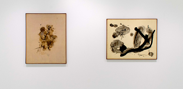 左の「作品57-10」はキャンバス、右の「作品35」(1956年)はファイバーボードに書かれています。