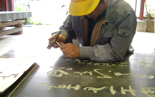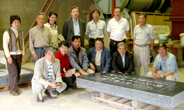 2005年、比田井天来と小琴、その門下の石碑を彫るために、中国から碑刻家、王建虎さんを招聘しました。