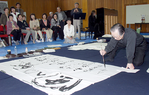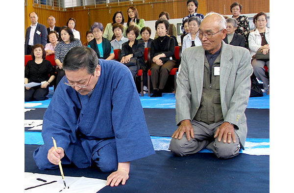 このときは、作品を書いてほしい方を募集して、その方の前で揮毫していただきました。