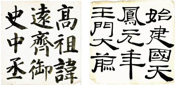 左は顔真卿「顔勤令碑」、右は「木簡」の臨書。