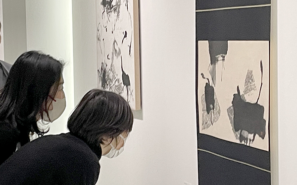 また、ツイッターで、「神楽坂のルートKでの比田井南谷展は明日4日まで。この左の作品とか、ほんと、すごいので、特に平面やってる人は、絶対見逃さないでほしい。」とつぶやいてくださったので、4日の最終日には、それまでにない大勢の方が来廊してくださいました。