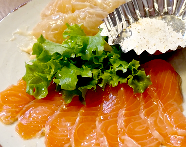サーモンとホタテを、みりんでのばした西京味噌に漬けました。
