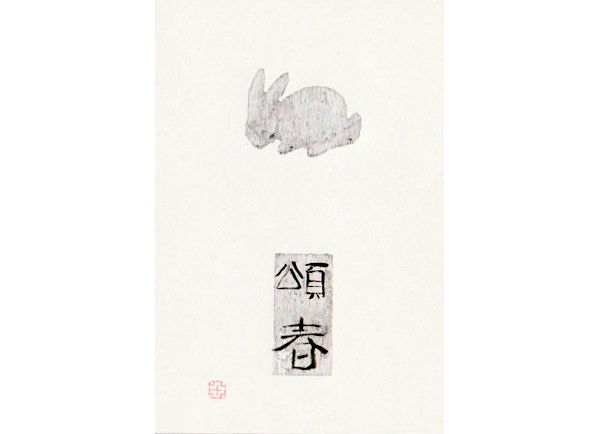 かわいいうさぎさん、木簡風の「頌春」、そして「印」。