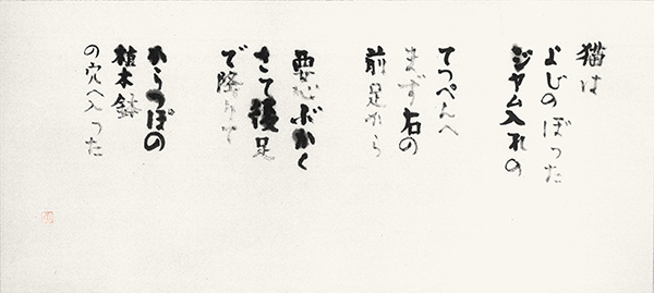そのうちにおぶってくれるのは住み込みの女中さんになりましたが、あの夕方の少し赤くなった道路の風景がこの書を見るたびに思い出されて、子猫にも優しい気持ちで書の構成を考えたのかななんて思うと少し胸が温かくなるのです