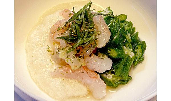 オクラと甘エビととろろのとろとろ和え。