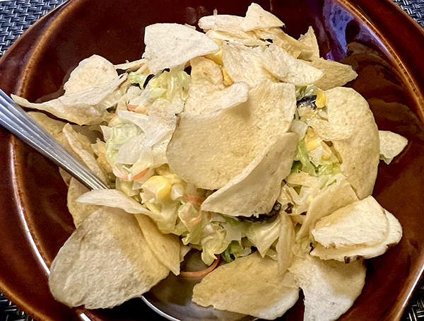 コールスローの上に載っているのはポテトチップス。