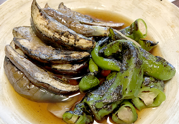 焼きびたしというとふつうは油を使いますが、これは油なしの素焼き。