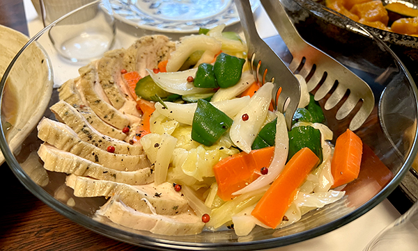 ヘルシーですがボリュームのあるお肉料理もあって、みんな驚くやらびっくりするやら喜ぶやらあきれるやら。