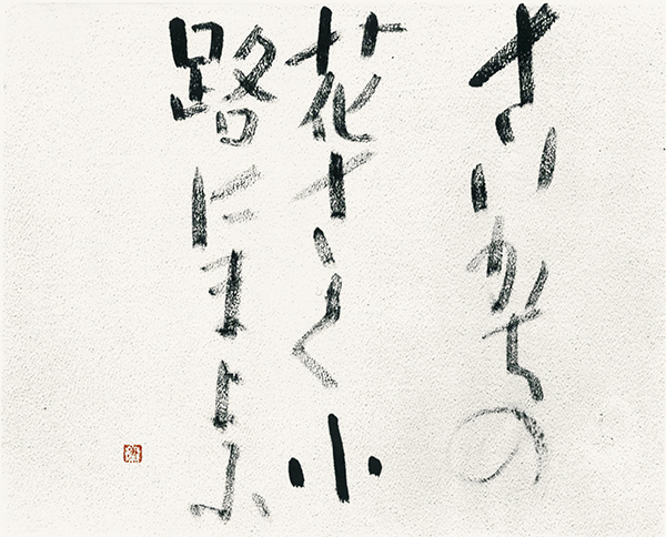 この頃小葩は、南谷と共にキャンバスに粗く下塗りをした上に書くことを実験していた時期で、書体も色々と試しながら、自分の可能性を広げていた時期なのでしょう。