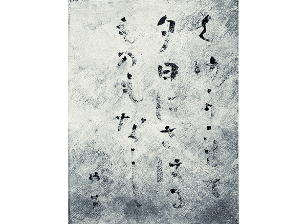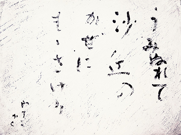 飯田蛇笏の雪峡に載っている句ですが、キャンバスにパレットナイフで粗く斜めの地模様をつけてから、沙丘、以外をかなで書くことで、なにげなく見た時に色々な風景や感情がやってくるような気がします。