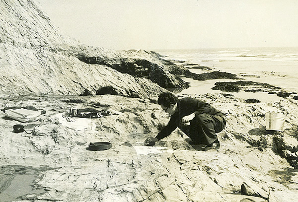 写真は、アメリカのボリナス海岸で拓本をとる南谷です。