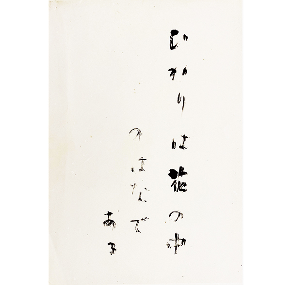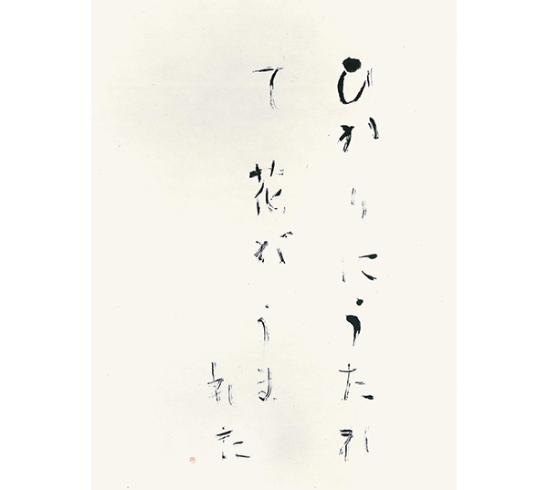 この頃から、細い本来のかなの要素を取り入れだしているのですが、あの不思議な墨を使うことでみんなの興味が形の方に行きがちなのを、本来の線の動きの力を感じてほしいと思ったのかもしれません。