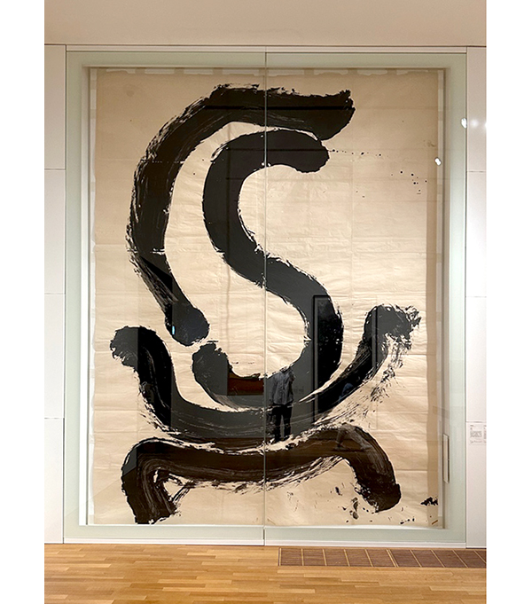 草間彌生展とは別の展示だが、昭和から平成に活動した書家、比田井南谷の5メートル角の巨大な作品を見て、大変な衝撃を受けたという。