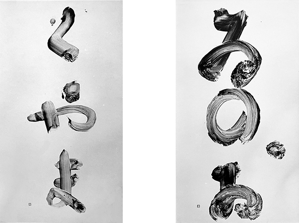 いろはの作品こそ古墨の配合による軌跡を浮き上がらせる作品ですが、自分だけこれを使うのはずるいとでも思ったのでしょうか、通常の墨を使って大作を何枚もかきあげています。