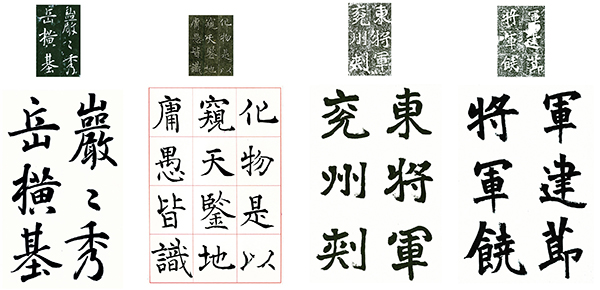 上は古典原本、下は比田井天来の臨書です。