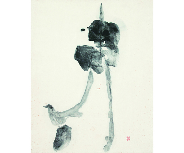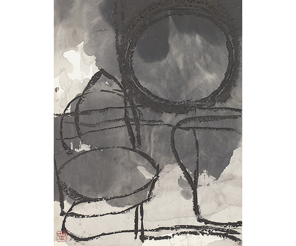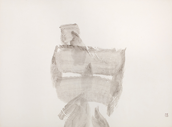 感情をたたきつけるような作品が多い中、淡墨で書かれたこの四角い「象」は、異次元の世界に存在する不思議な物体のように見えます。