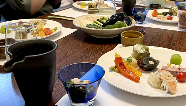 左奥は鶏肉と茄子とオリーブのゼリー寄せ。