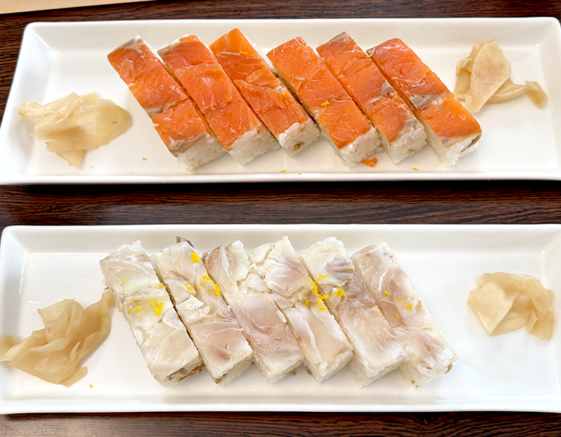 ◇北海道サーモンと鯛のコブ酢締めの押し寿司