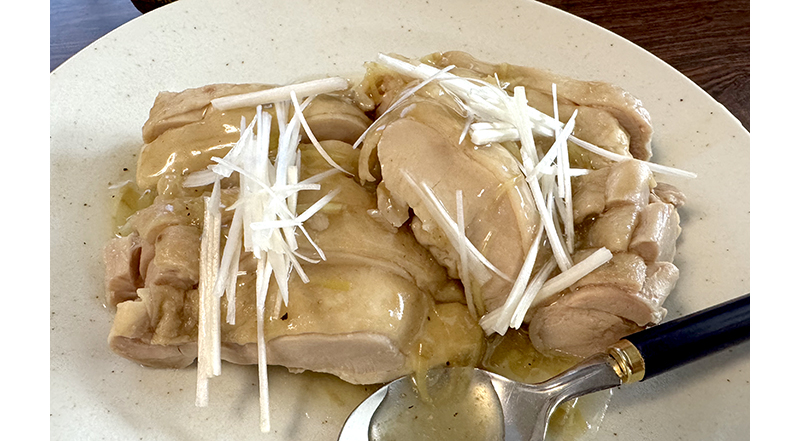 柔らか〜い、そしてジューシーな蒸し鶏と白髪ネギ。