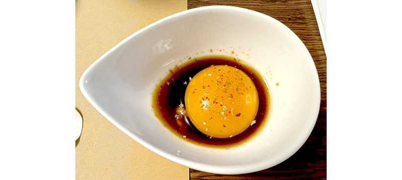 卵の黄身にすき焼きのタレとフォンドボー、七味山椒。