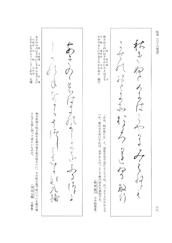 - かな単体/連綿/百人一首/色紙(四季の歌)/色紙(をごとのちり)/短冊(三十六歌選)
