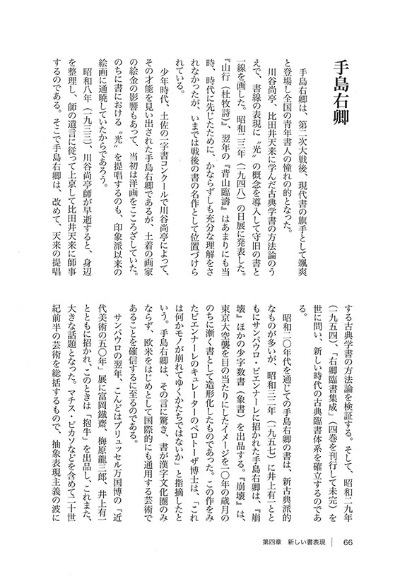 - 【第一章 謙慎書道会】豊道春海/赤羽雲庭/西川寧/青山杉雨/上條信山/小林斗盦【第二章 辻元史邑の系譜】広津雲仙/村上三島/古谷蒼韻/今井凌雪/尾崎邑鵬/梅舒適【第三章 多彩な書表現】鈴木翠軒/木村知石/小坂奇石/石橋犀水/桑原翠邦/近藤摂南【第四章 新しい書表現】上田桑鳩/井上有一/手島右卿/松井如流/宇野雪村/金子鴎亭/比田井南谷【第五章 関西のかな作家】安東聖空/日比野五鳳/桑田笹舟/宮本竹逕/杉岡華邨/高木聖鶴【第六章 】熊谷恒子/森田竹華/飯島春敬/植村和堂/筒井敬玉