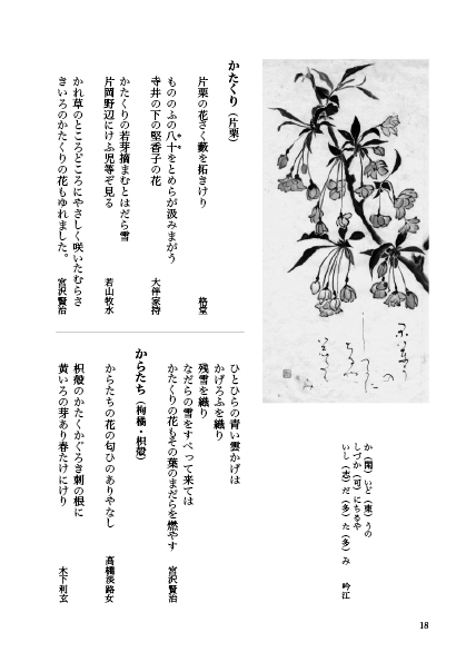 万葉集から現代の詩や俳句まで、四季の花をうたったものを季節ごとにわけて紹介します。作品づくりの墨場必携として最適です。 春夏秋冬にわかれているので、季節に応じた作品づくりが可能になります。魅力的な作品例もあり参考になります。 イメージがふくらむ美しいことばで花をうたった漢字かな交じり書作品を書きませんか?