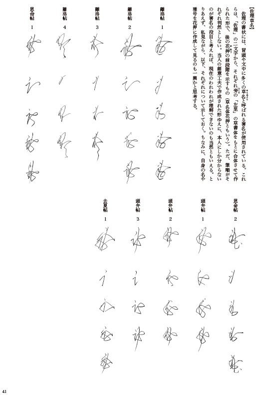 - 図版(詩懐/離洛帖/頭弁帖/恩命帖/去夏帖)/解説/字形と筆順