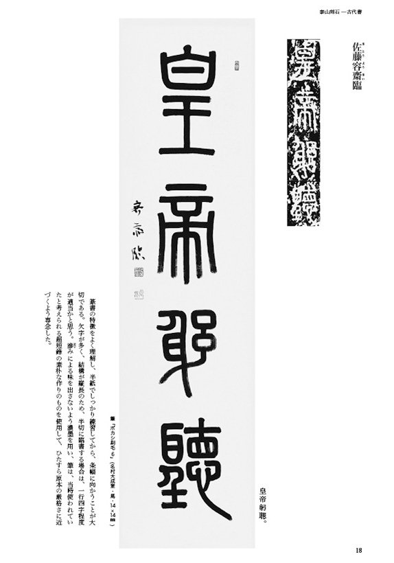古典名品の線と形を理解し、素直に再現するための指針誕生。篆隷楷行草書の代表的な古典60点を選び、わかりやすい解説をつけました。それぞれに半紙臨書4点と、臨者による作品例2点が掲載されています。書壇の指導者58名による半紙と条幅の臨書例を掲載。注意点なども明快に解説。
