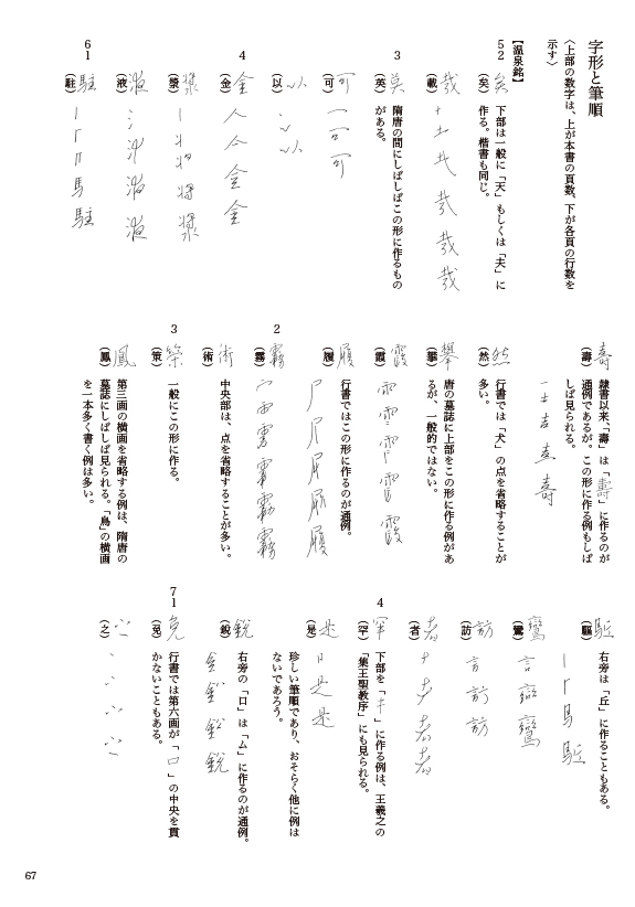 - 図版(温泉銘、晋祠銘)/本帖とその学び方/字形と筆順