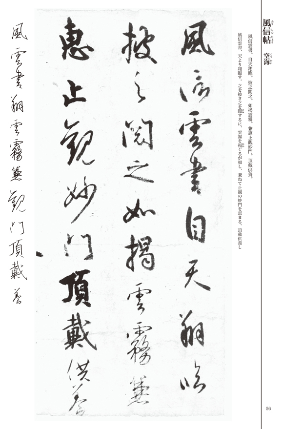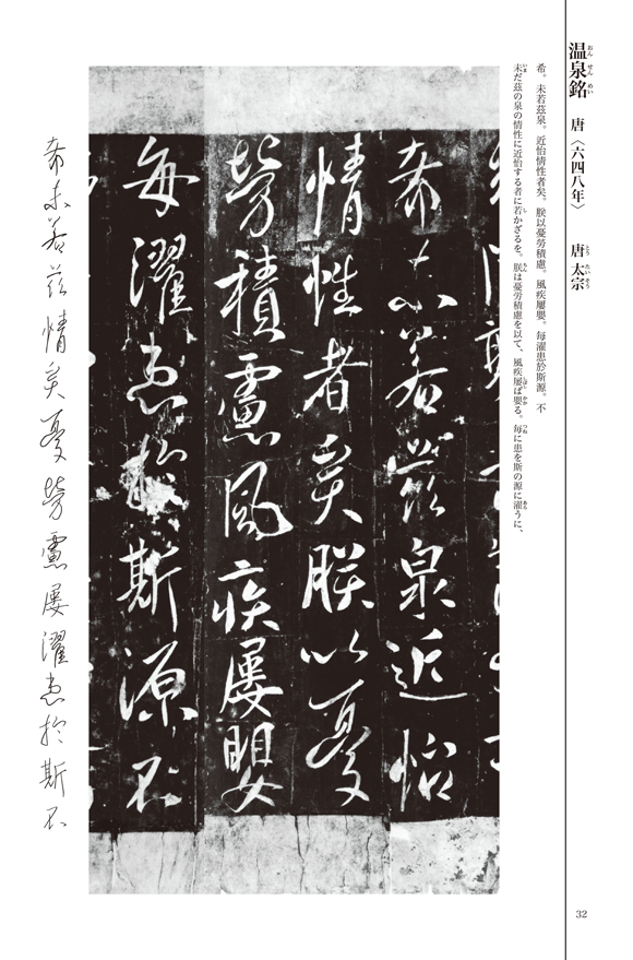 - 蘭亭序(王羲之) 神龍半印本・張金界奴本/ 集王聖教序(王羲之)/ 姨母帖・喪乱帖・二謝帖・孔侍中帖・近得書帖・昨書帖(王羲之)/ 十七帖(王羲之)/ 廿九日帖・鴨頭丸帖(王献之)/ 伯遠帖(王珣)/ 柏酒帖(王慈)/ 尊体安和帖(王慈)/ 真草千字文(智永)/ 温泉銘(唐太宗)/ 晋祠銘(唐太宗)/ 枯樹賦(褚遂良)/ 文皇哀冊(褚遂良)/ 書譜(孫過庭)/ 祭姪文稿(顔真卿)/ 争坐位文稿(顔真卿)/ 送裴将軍詩(顔真卿)/ 自叙帖(懐素)/ 杜家立成雑書要略(光明皇后)/ 風信帖(空海)/ 灌頂記(空海)/ 李嶠詩(嵯峨天皇)/ 伊都内親王願文(橘逸勢)/ 離洛帖(藤原佐理)/ 解説(古典の解説・字形の解説・筆順)