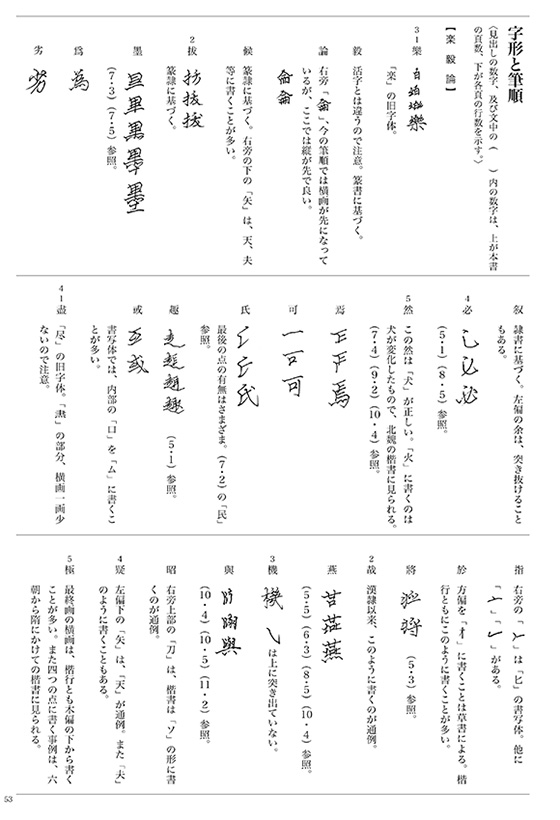 - 楽毅論/杜家立成雑書要略/現代語訳/解説/杜家立成雑書要略図版(中略部分)/字形と筆順/臨書作品制作のために(節臨に適した箇所)