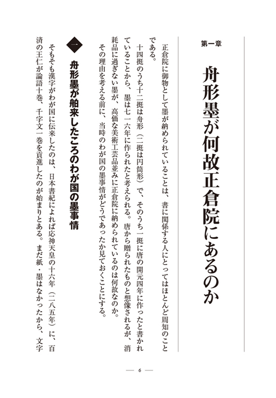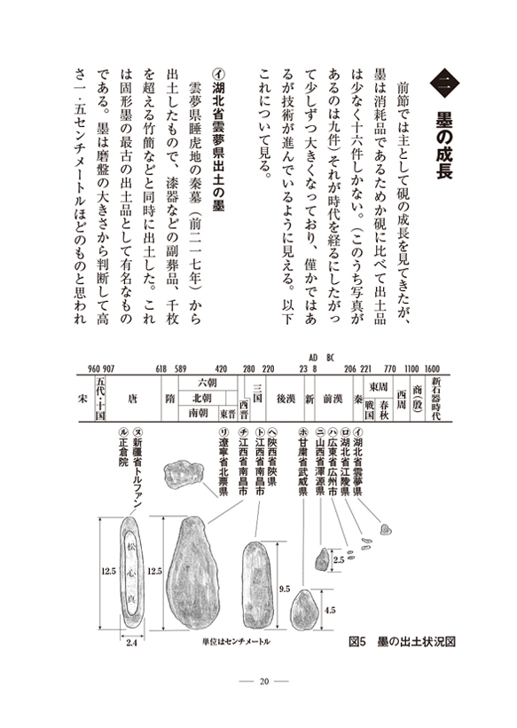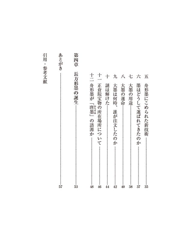 墨の発生と歴史、日本の墨事情、遣唐使との関係や墨譜などから、「形状」による墨の歴史を考察する意欲作。