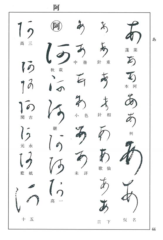 平安時代の仮名の名筆と、仮名字体発達史上貴重な資料を、五十音順に集大成。その数5500。すべての文字は採用した原典と同寸法です。全資料の中からそれぞれのもつ連綿の美しさを伝えるために、代表的な部分を2字から7字連綿まで豊富に掲載。仮名の歴史、出典解説付き。書芸文化新社刊。