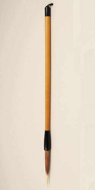 全紙に写仏を書くために「同じ太さの線を長く引く筆が欲しい」と頼まれて作った筆。主原料は羊毛。穂先はまとまりやすく仕上げてありますが、あえて腰のバランスを崩すことで、今までにない表現ができます。