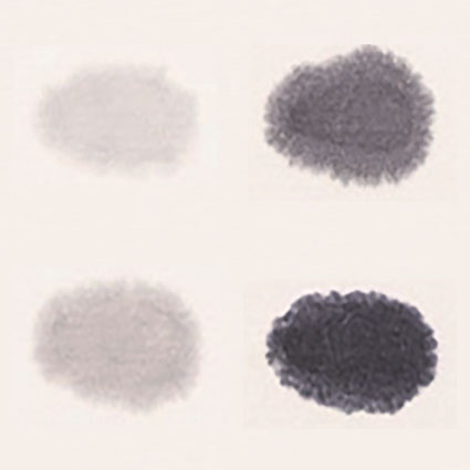 右下:基準濃度 右上:水+0.5cc 左下:水+5.0cc 左上:水+10.0cc ※ご覧のディスプレイにより表示色に若干の違いが生じます。
