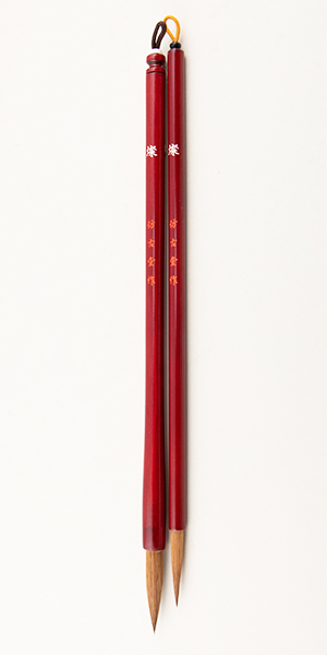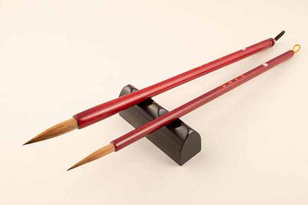 上質なイタチ毛を使用。大は穂先のまとまり、筆の開閉、滑らかな書き味にこだわって制作した逸品です。小は穂先にボリュームがあり、ぴりっとした先の利きも魅力的。躍動感のある線が出ます。