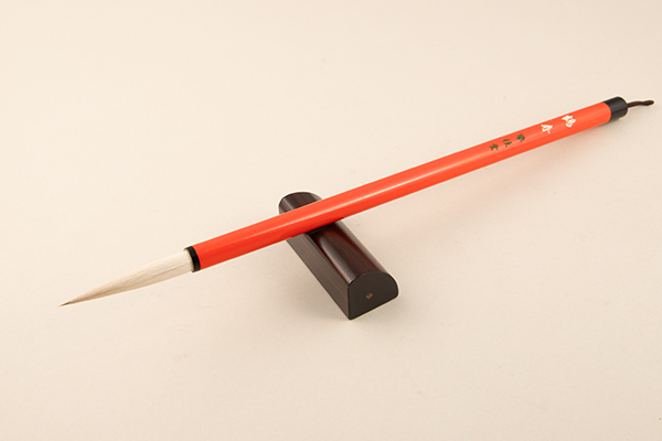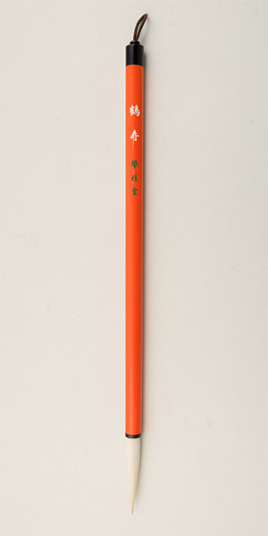 「鶴寿千歳」の言葉どおりたいへん縁起の良い銘で、朱の軸も艶やか。新年にぴったりのイメージです。墨含み良く、毛先に適度な弾力があるため、かな条幅に最適と大好評です。