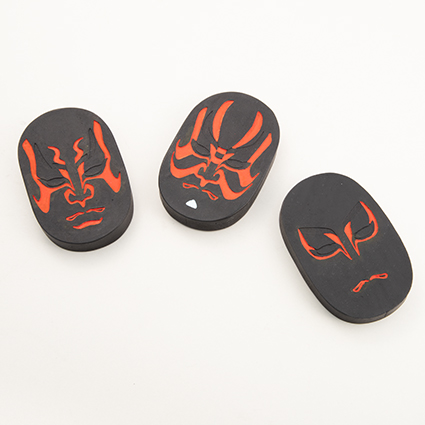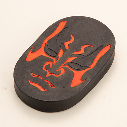 錦光園製。松竹株式会社監修のもと、日本の伝統文化である歌舞伎の象徴的な「隈取」をモチーフに製造。代表的な歌舞伎の演目『義経千本桜』の隈取、佐藤忠信(実は源九郎狐)「火焔隈」と、演目にちなんだ【桜】の香りも楽しめる、アートとしての奈良墨。 墨型は、現在日本で唯一の専業「墨型彫刻師」である中村雅峯氏による彫刻。職人の造形美と奈良墨の香り、豊かな墨色をお愉しみください。