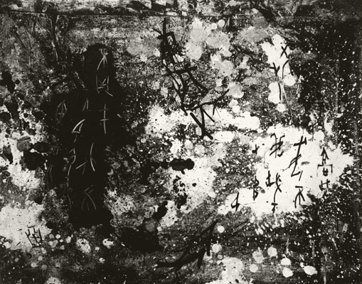 この点で、再び相違に気が付く。ダダイズム、シュルレアリスム、タシズム、アンフォルメル、野獣派を生み出した西洋ヨーロッパと、何世紀もの禅の影響、中国宋代の絵画の背景、そして重要な書の伝統を持つ日本との相違である。いたるところで、双方の領域は互いに接触する。ヨーロッパとアメリカでは、面白半分に禅に手を出すが、それにもかかわらず、トビーやマッソン (注8)は、他の運動より深く禅に接触している。カレル・アッペル(オランダの画家)(注9)は、日本の書家が行っているのは絵画paintingと呼ぶことができない。それは文学literatureを生み出しているのである。絵画はヨーロッパのみであり、しかも北ヨーロッパのみである、と語っている。この発言で、とにかくヨーロッパの芸術家による絵画が、言葉と記号文化の外で生み出されていることがいかに多いかが明らかとなる。しかし、実際は、文学と呼ばれることを恐れているが、デザイン的な表現で行っているのである。なるほど、多くの芸術家がそのように〔デザイン的表現を工夫〕しているけれども、一部の芸術家は、疑いなく、抽象の世界が日本の空emptinessの実現のように積極的な価値となりうることに気づいている。