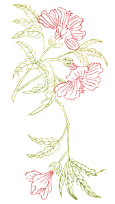 中国の詩箋などのモチーフを使って、美しいはがきを作りました。夏の花です。